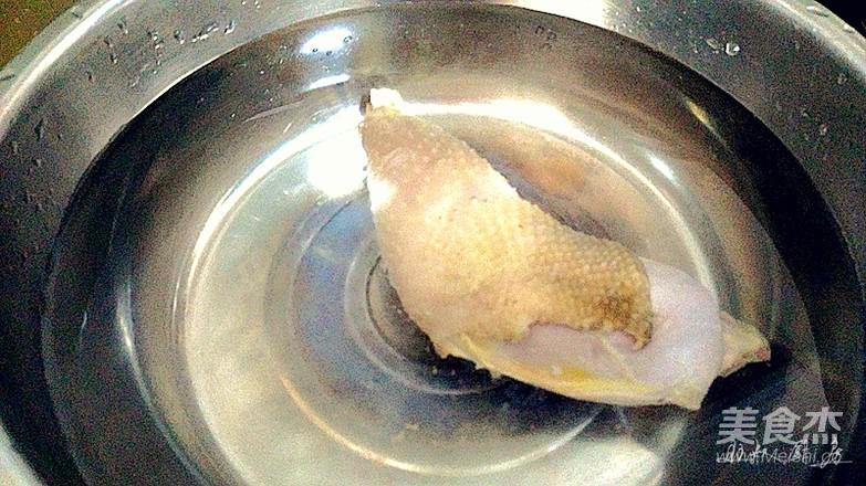 夾入放有冰塊的涼水,雞腿徹底冷了后再重復(fù)上步驟三、四次;