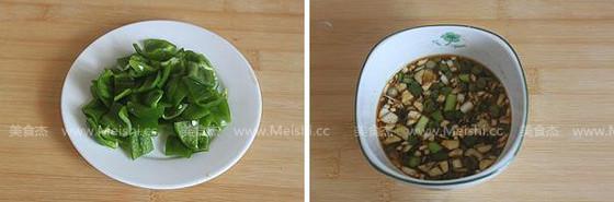 9.第一遍都炸完后開中大火將鍋里的燒到油里面不再有劈啪的水聲,將所有的炸過第一遍的肉段倒入鍋中炸半分鐘撈出,這時候肉段的外皮非常酥脆,里面非常的嫩滑,這時候撒上椒鹽就是椒鹽里脊了;如果用的是皮挺厚的青椒,最好炸完肉段后,將青椒塊也放入油中滑一下這樣青椒才能熟,我用的是非常薄皮的,所以省略了這一步