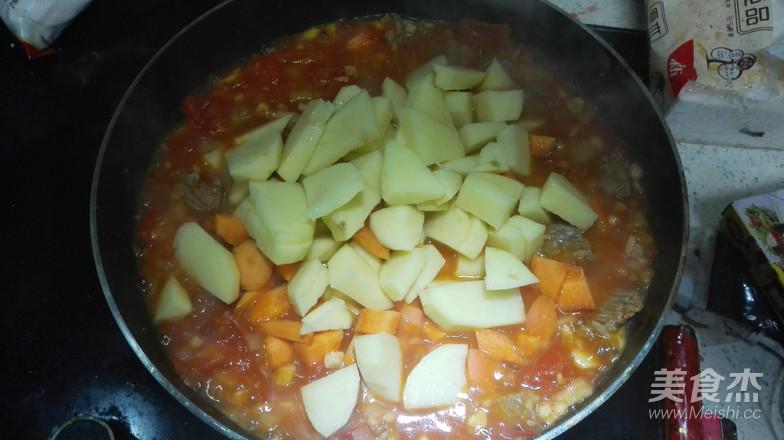 這個時候底湯已經差不多了,加入焯過水的牛肉(牛肉焯水為了去除血沫)