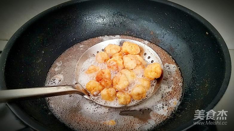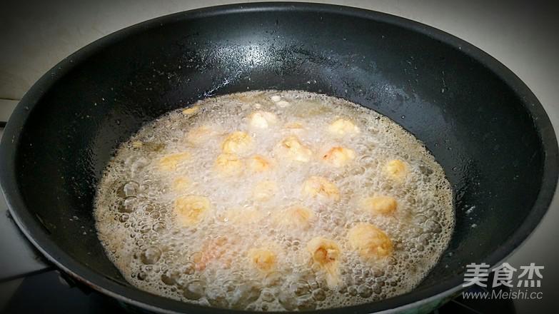 6.鍋中放油燒熱,下入肉球炸至。