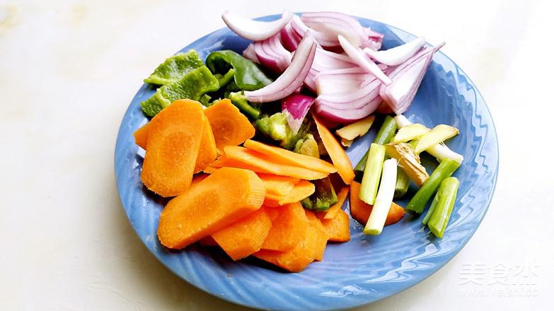 8.準備青椒,胡蘿卜,洋蔥,蔥,姜。