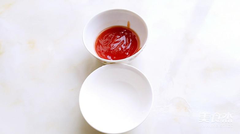 10.番茄醬中加入1茶匙砂糖,1茶匙米醋,鹽1克混合。