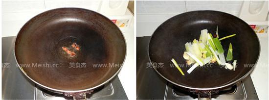 3.起油鍋,放入八角爆香,緊接著放入蔥姜蒜煸出香味。并把蔥姜蒜在鍋底盡量均勻平鋪開