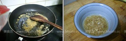 2.炒鍋注入植物油,油燒3成熱,放入蒜蓉炒出香味,加入生抽,加入清水