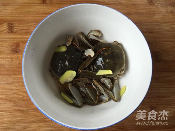 將生姜絲、料酒、醋倒入蟹中,抓勻腌制半小時;