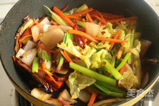 再下入其他蔬菜繼續翻炒,加適量鹽調味。