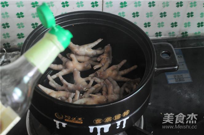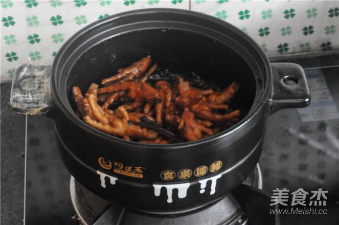 蓋上蓋子大火燒開,小火燉煮至能用筷子輕易撮透雞爪,即可收汁