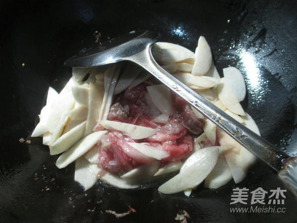 接著,合入肥牛片,加1湯勺料酒。