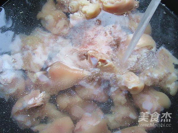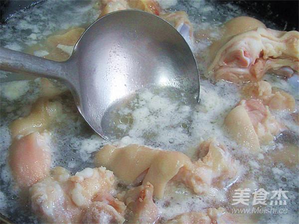 2.鍋內(nèi)放入涼水,將溫水清洗干凈后的豬蹄放進(jìn)鍋中煮開
