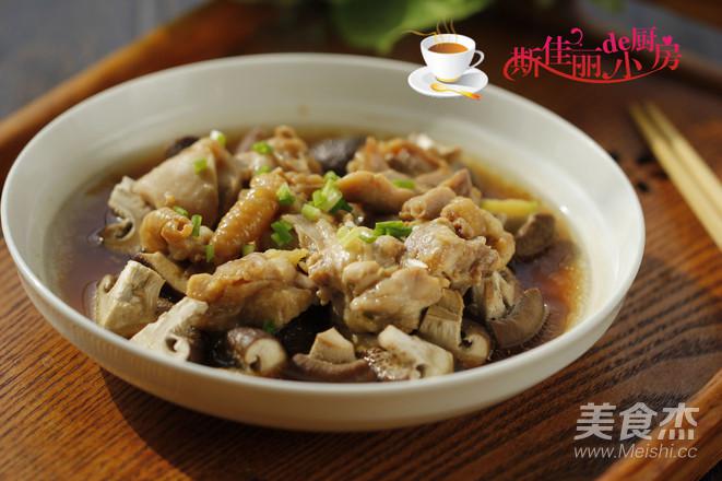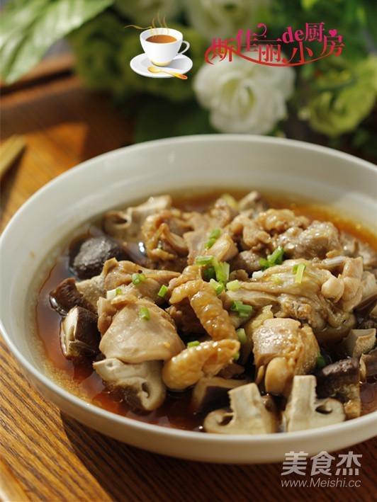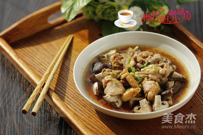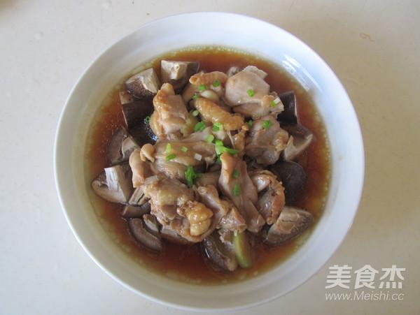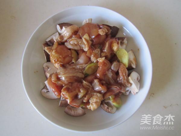 1. 雞腿去骨后這樣可以更易蒸熟; 2. 雞腿肉放入鹽、生抽、蠔油等調味料腌制一下; 3. 香菇撒點鹽拌均勻入點底味; 4 香菇墊底,腌制雞腿塊放在香菇上,大火蒸上十分鐘即可。