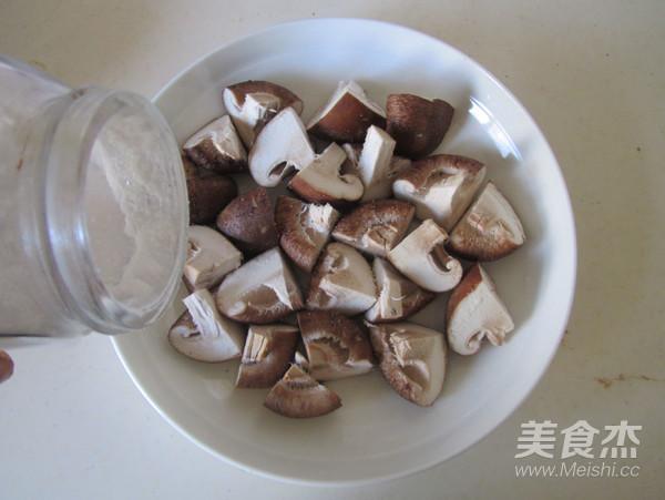 香菇切成小塊后放入盤中, 放入少許鹽拌均勻;