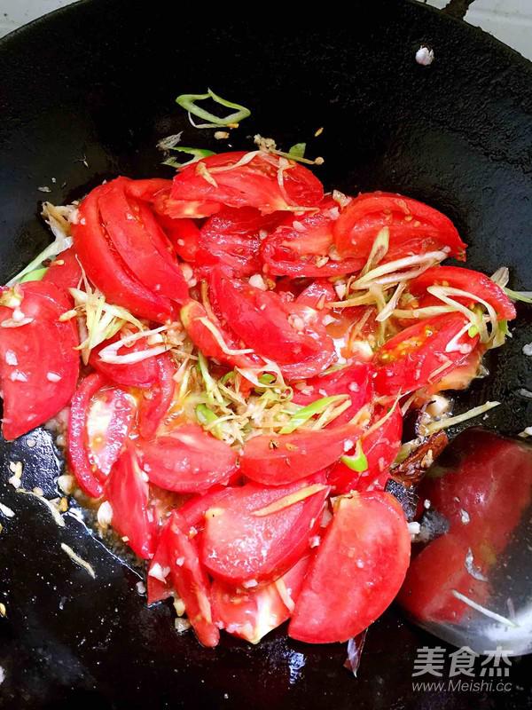 加入西紅柿大火翻炒,再加水加蓋煮湯