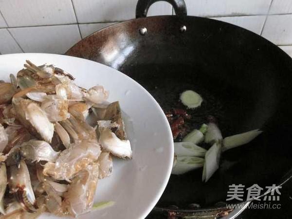 倒入河蟹煸炒均勻,加鹽調味