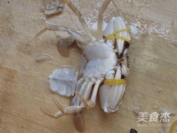 把河蟹洗刷干凈,蟹掩用刀切掉