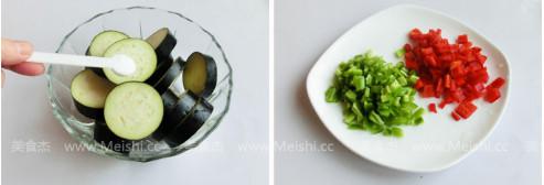 1.茄子切片,放少許鹽拌勻,茄子腌制10分鐘左右,擠出水份